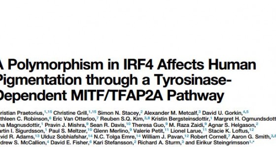 Recently in an international collaboration with Eiríkur Steingrímsson group, two members of our lab were contributors and co-authors of a research article in Cell which is entitled, “A Polymorphism in IRF4 Affects Human Pigmentation through a Tyrosinase-Dependent MITF/TFAP2A Pathway”.